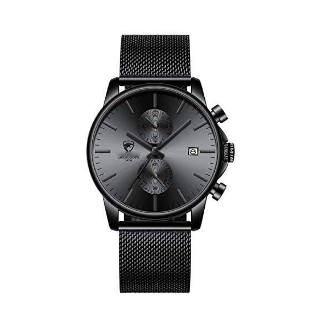 Men’s Sleek Minimalist Chronograph Watch with Mesh Band & Date
